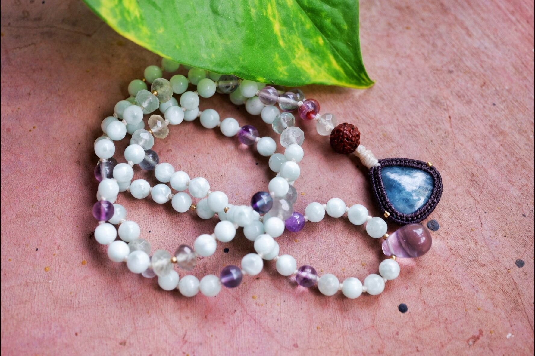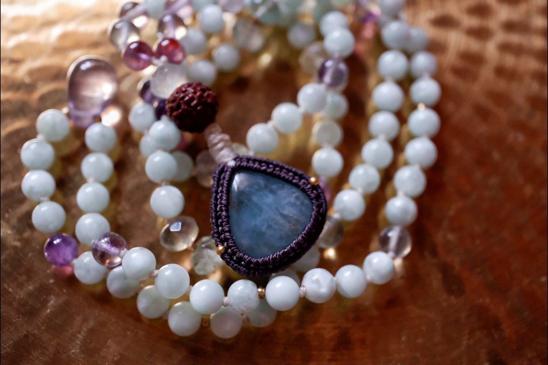 108の半分、54番目と55番目の間には雫型のフローライトビーズを使用し、ジャパが半分のところにきたことを指で感じられるようになっています。