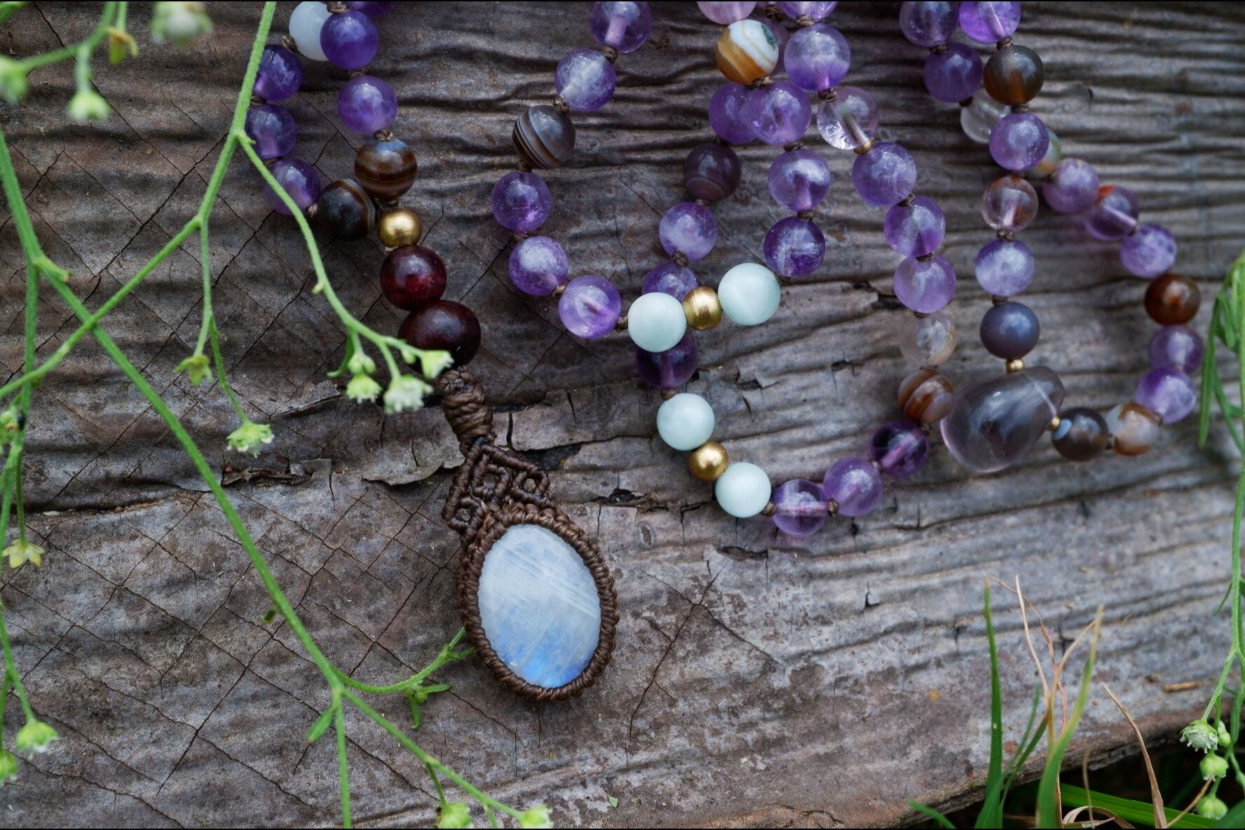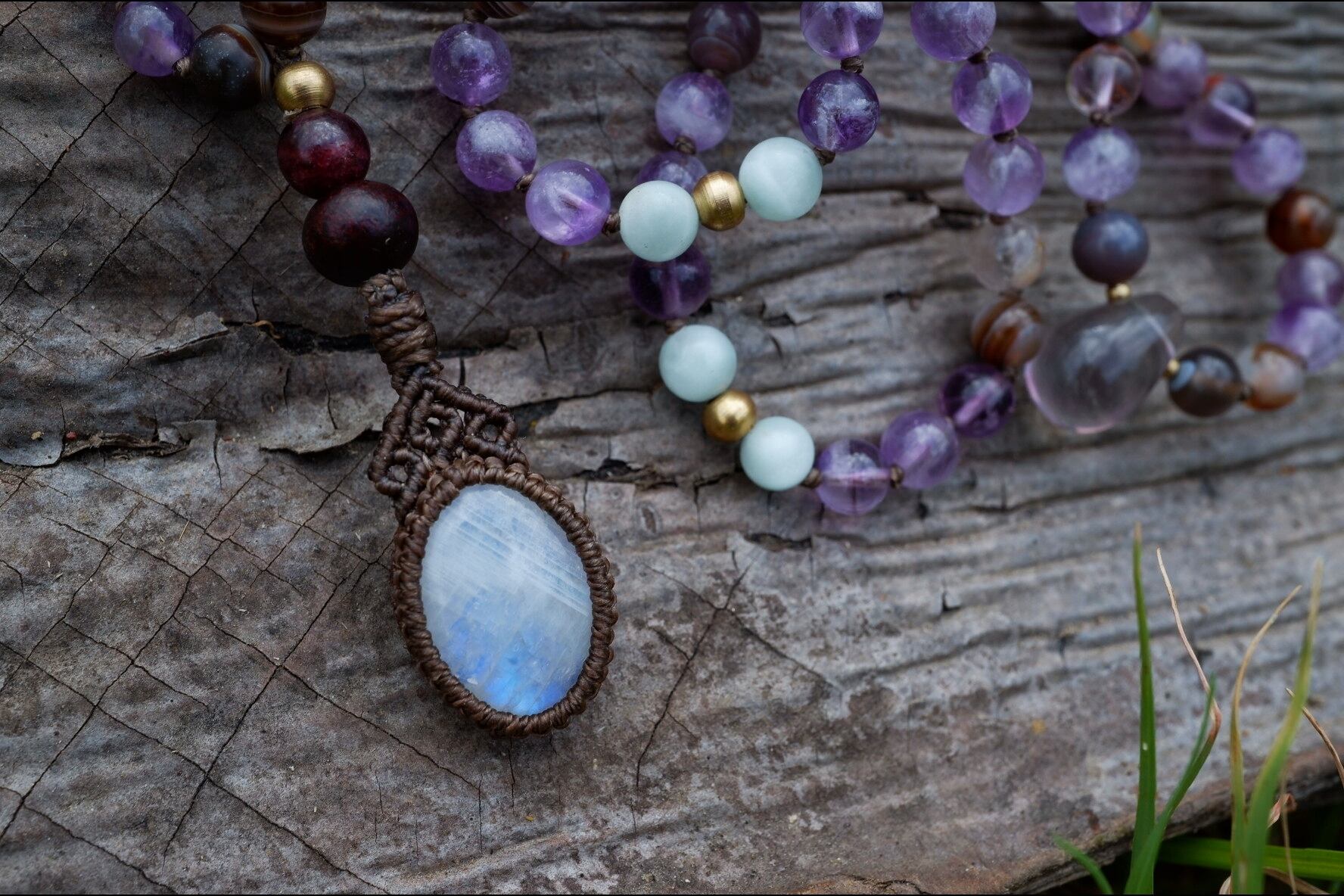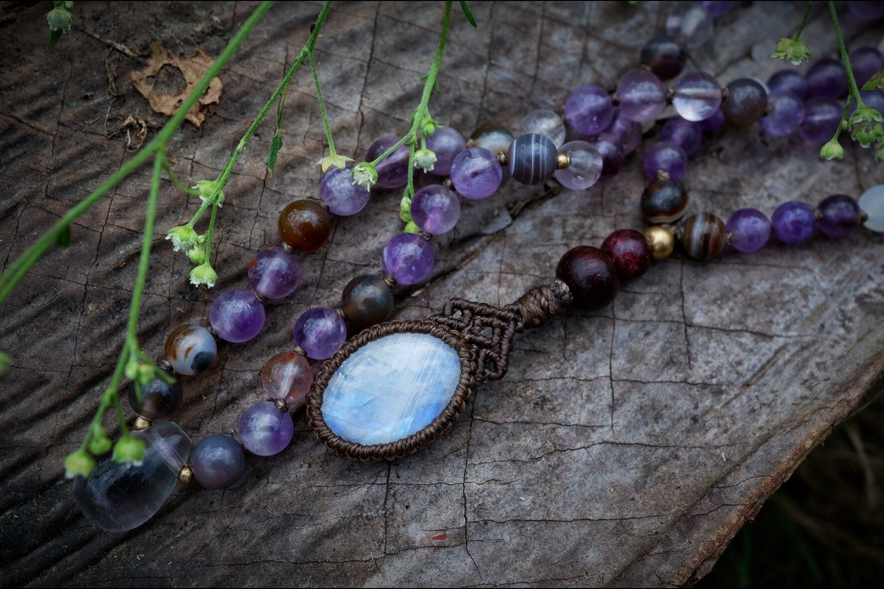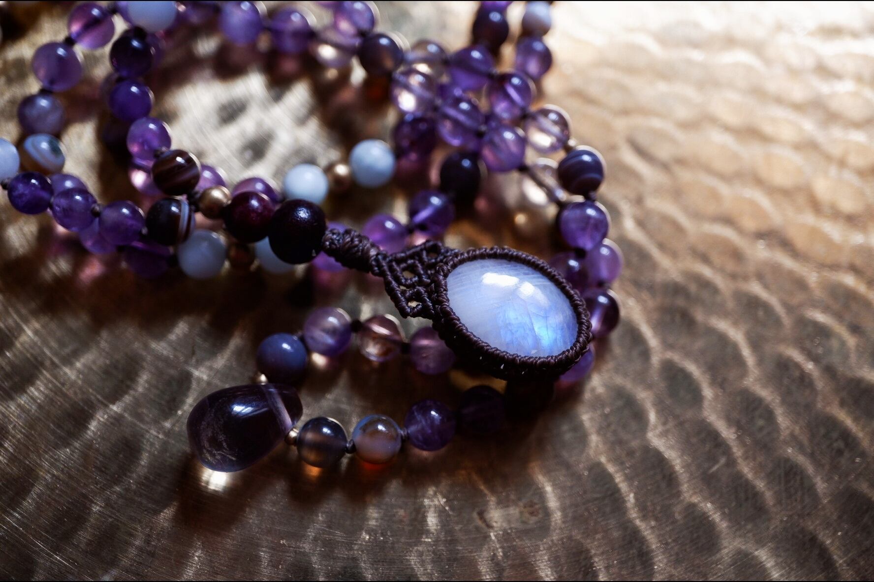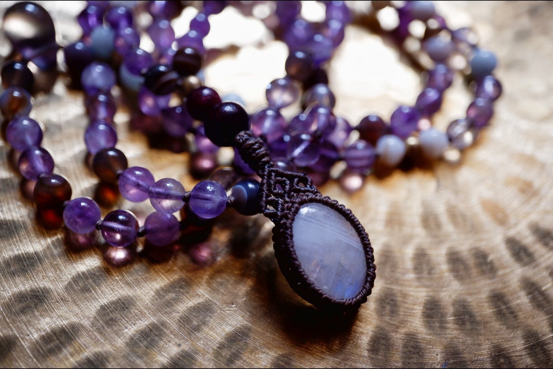 Japamala : Blue Moonstone & Garden Quartz Ametyst