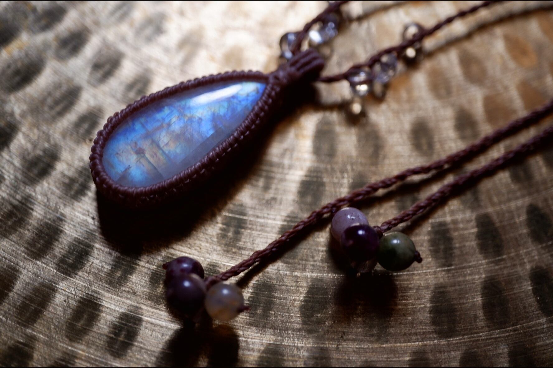 Rainbow Moonstone Macrame Necklace