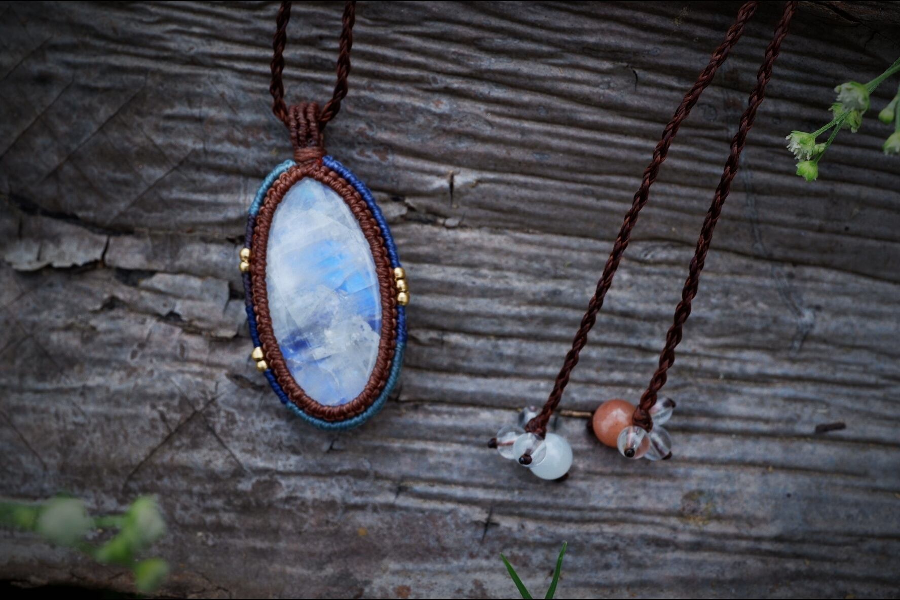 背守り部分はオレンジムーンストーン、ムーンストーン、小さな水晶ビーズを配置しています。