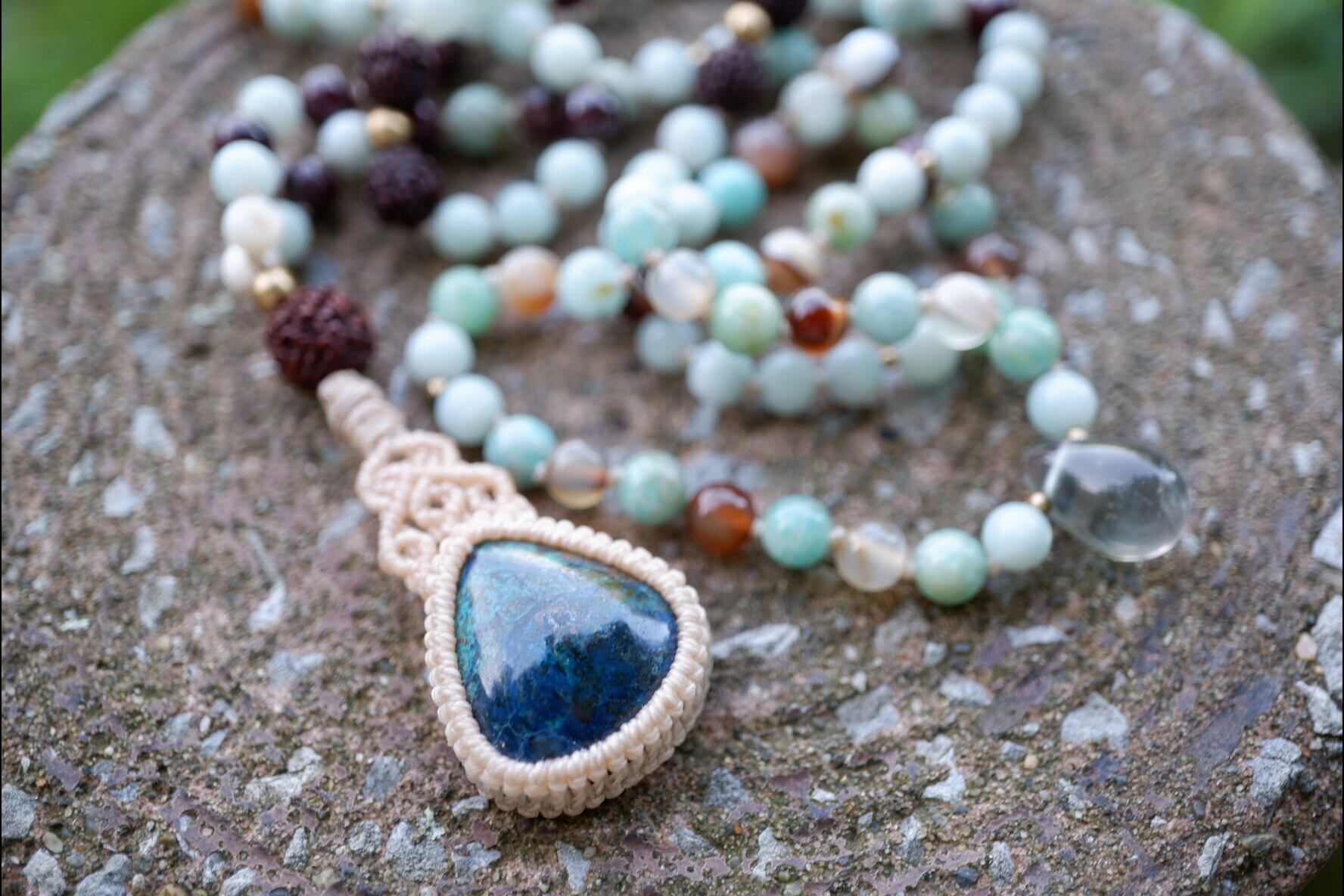 アズールブルーがひときわ美しいアズライトをトップに選びました。霊性に強く働きかける石、アズライト。