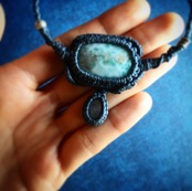 様々な青色が海を連想させる癒やしの石、ラリマー。月のシンボルであるムーンストーンと組み合わせて作りました。