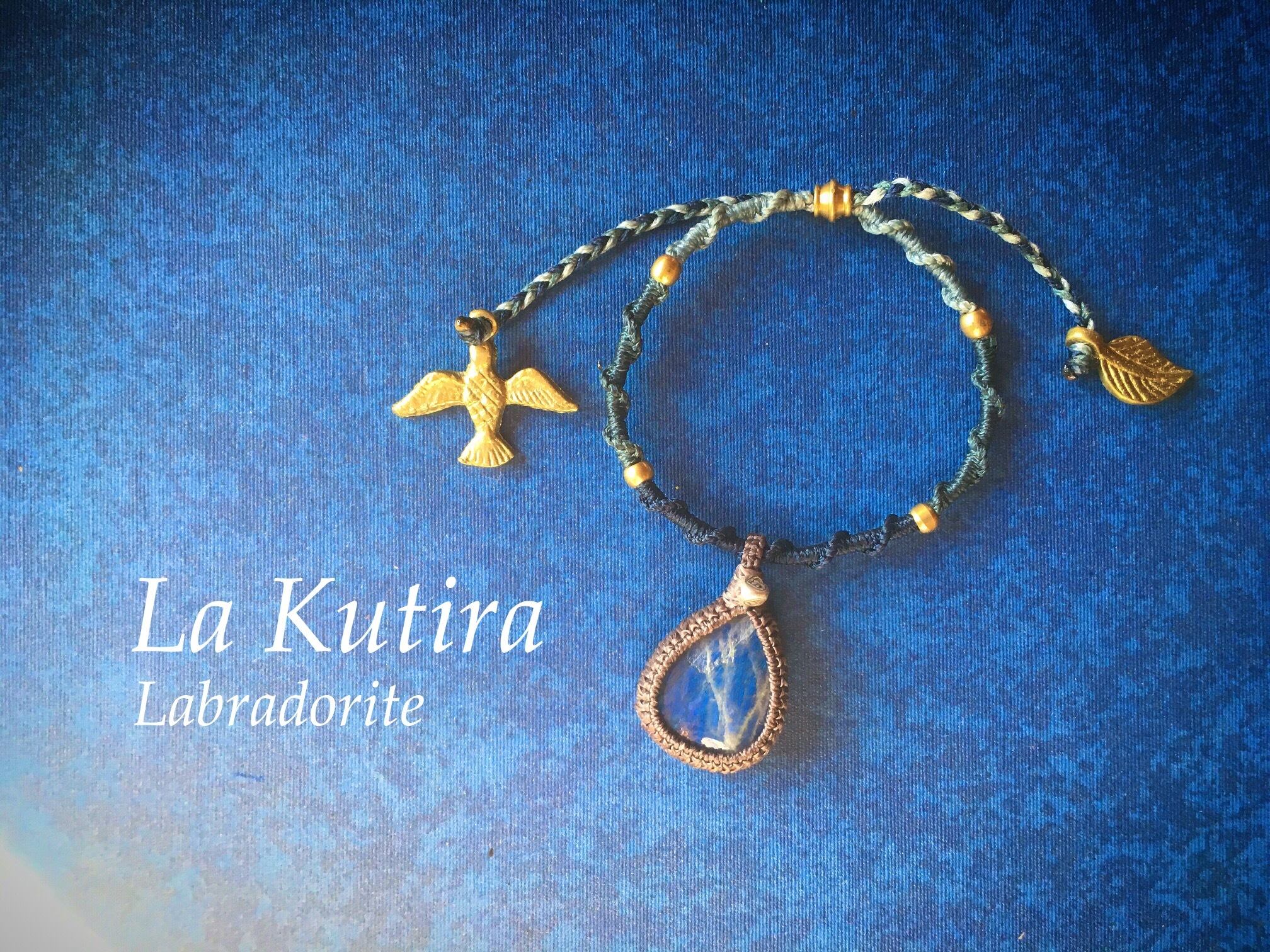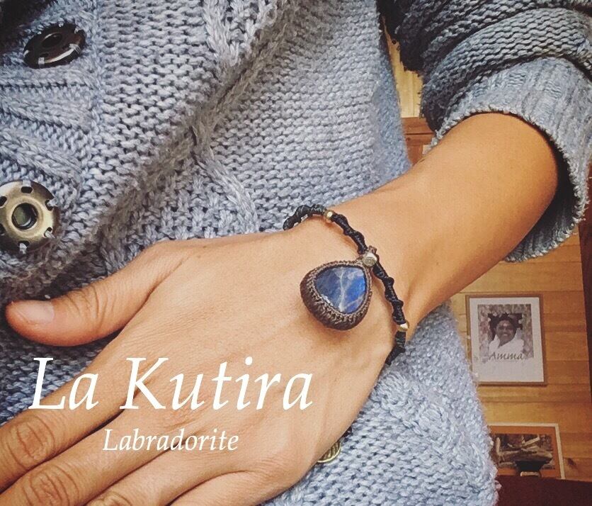バングルタイプのブレスレットからラブラドライトがぶら下がるようにデザインしています