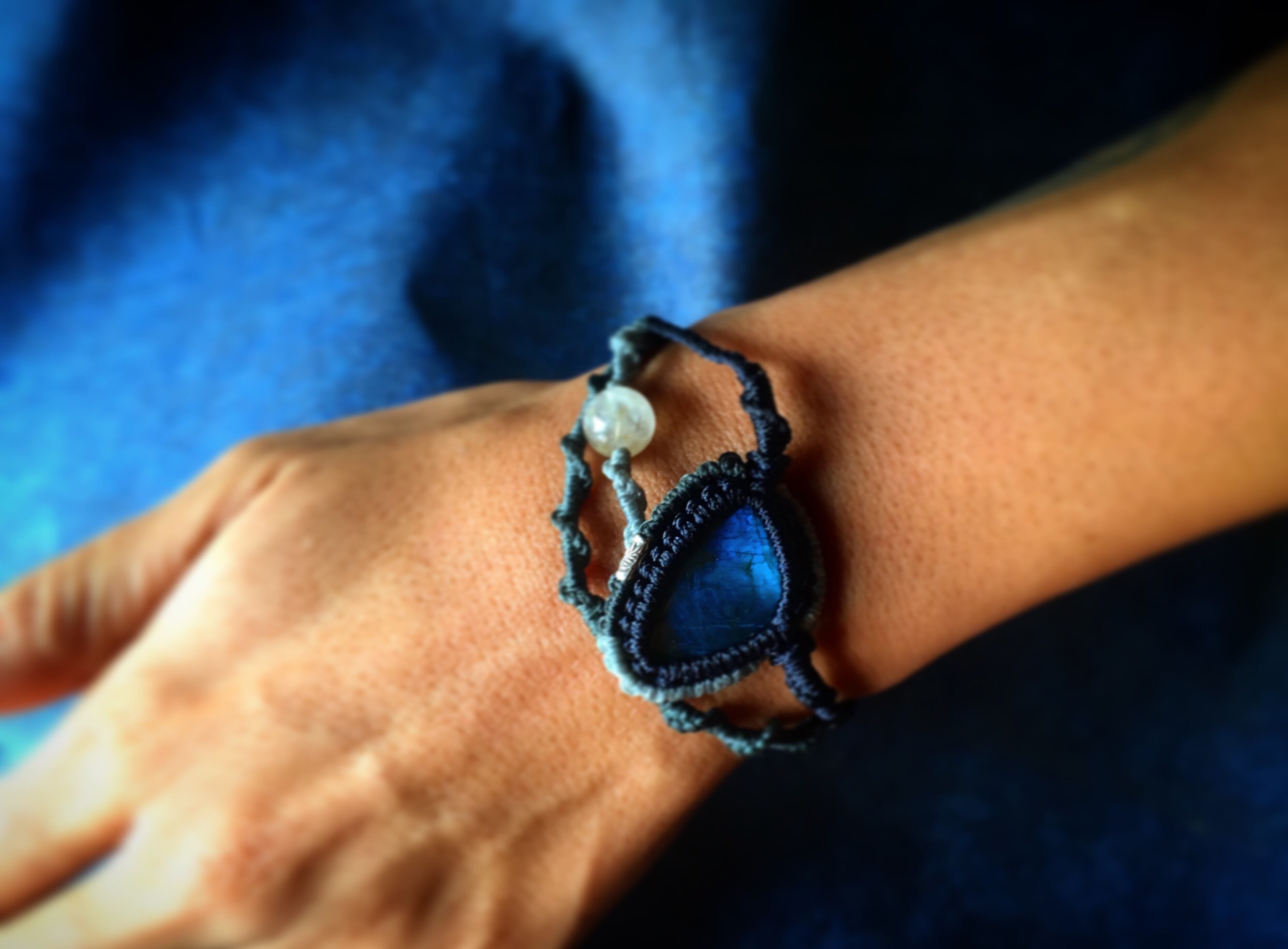 アシンメトリーなデザインが個性的なラブラドライトのブレスレット