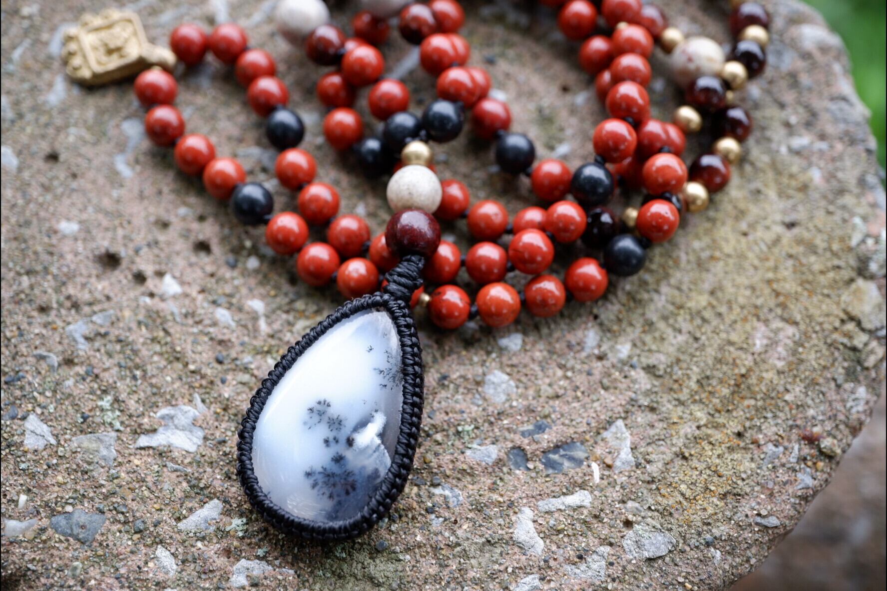 Japamala : Dendritic Agate, Red Jasper, Red Tiger Eye