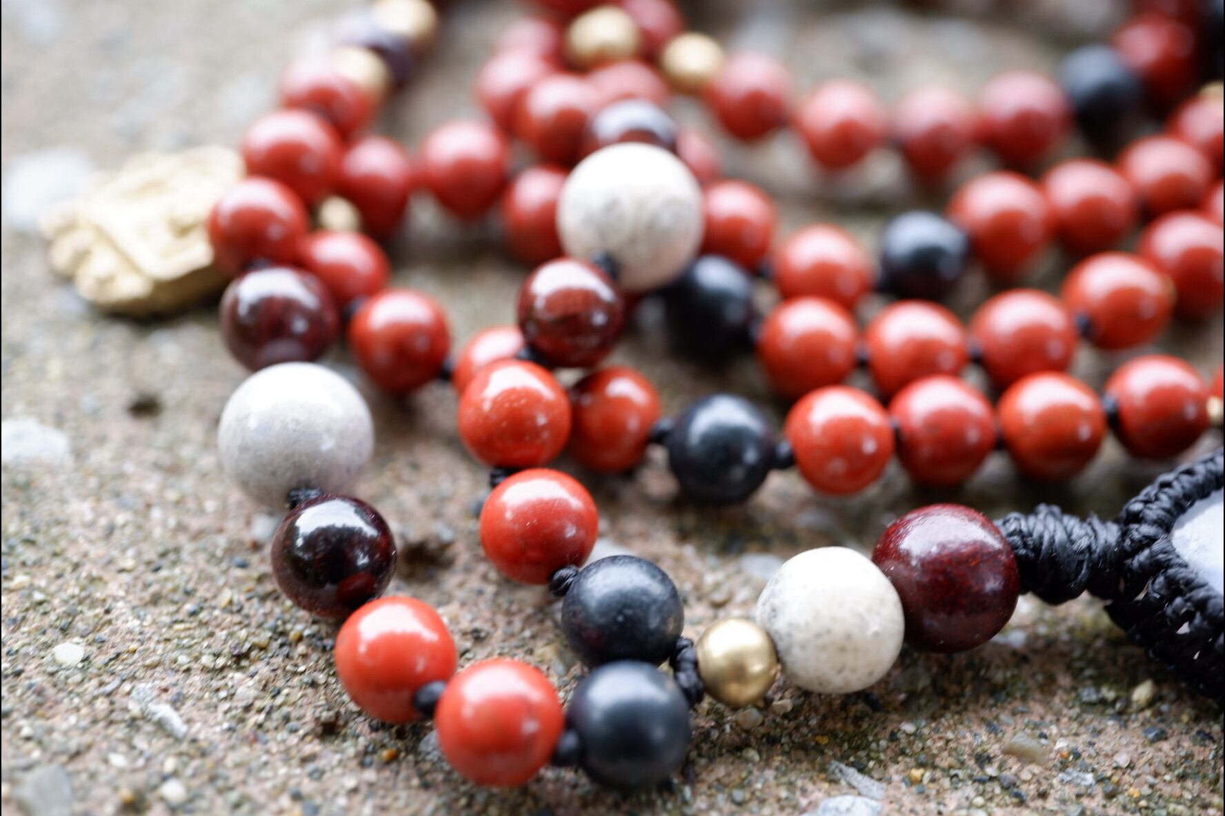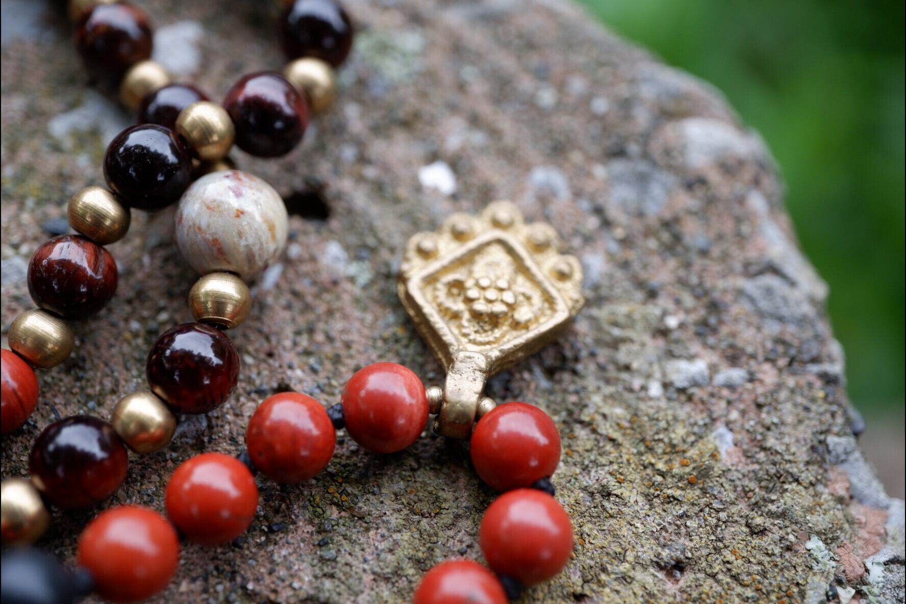 大地のエネルギーを感じるビーズたちを選んでつなぎました。