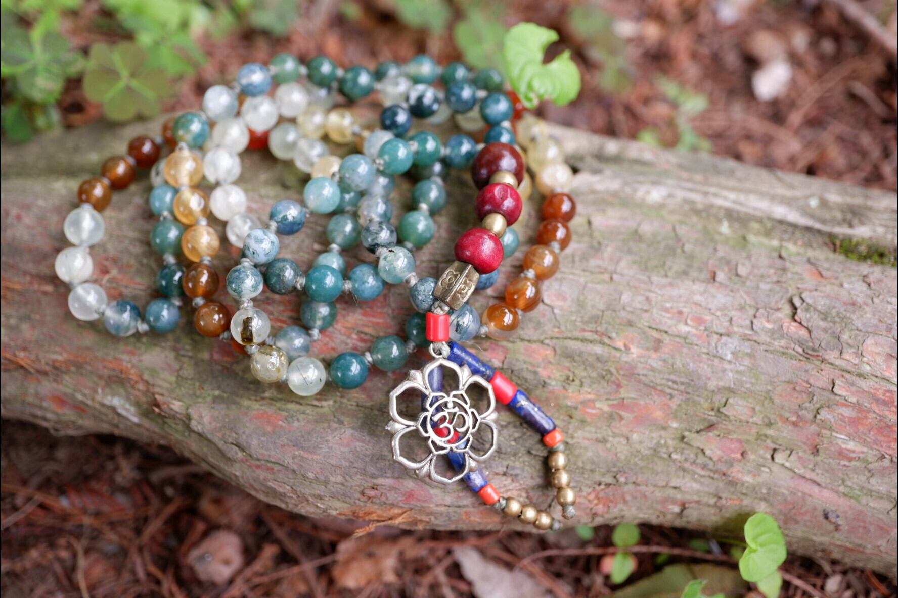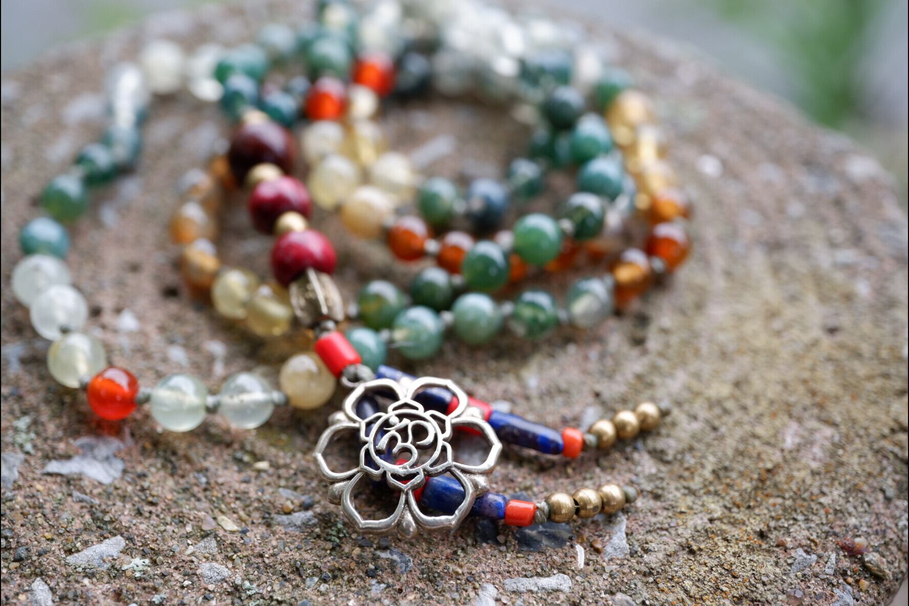 ひとつビーズを通して、ひとつ結び目を作る。マラを繰っていくとき、ビーズとビーズの間、この結び目に瞑想が起こる、と言われています。