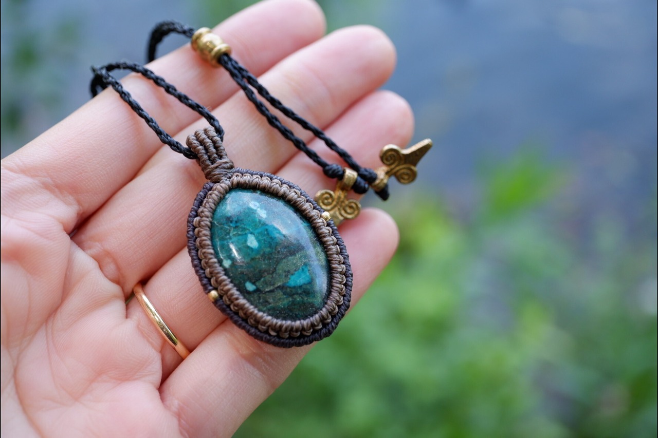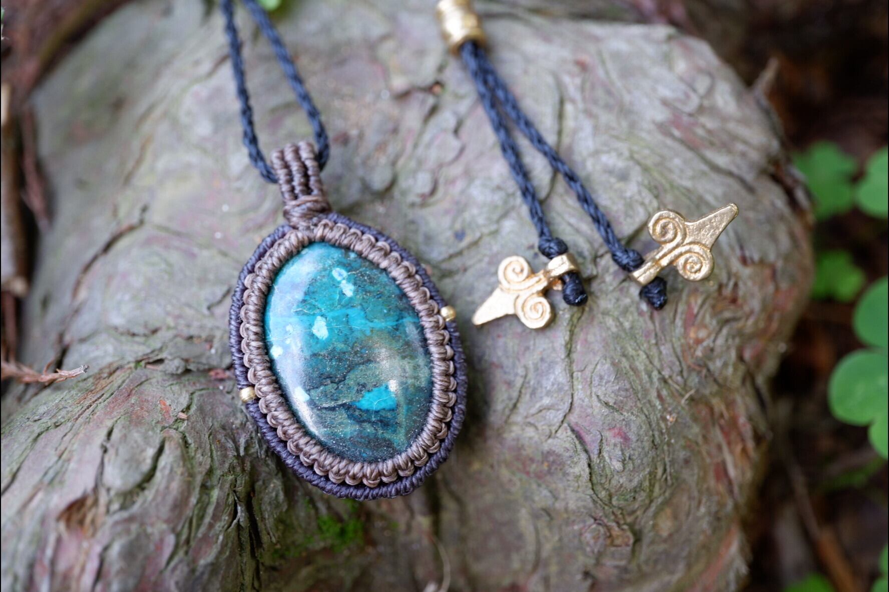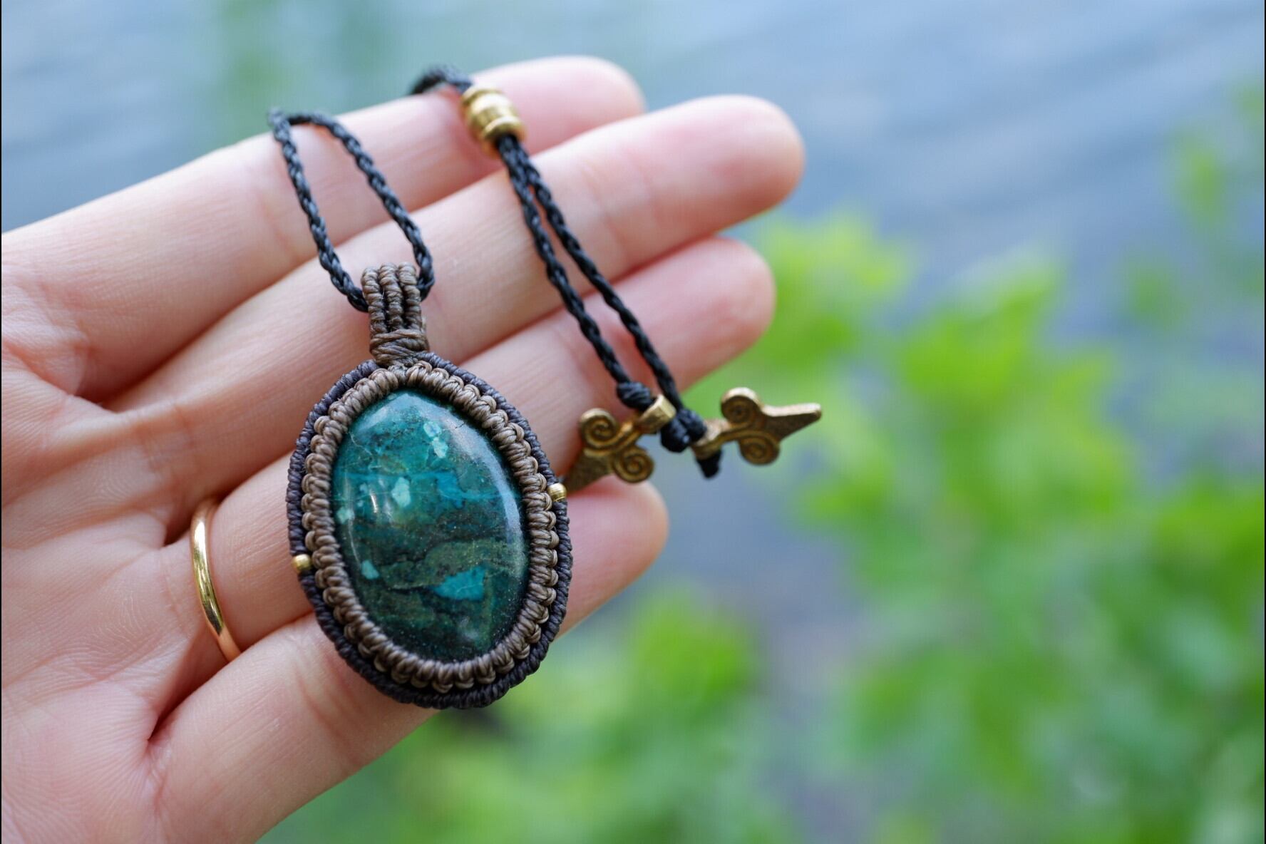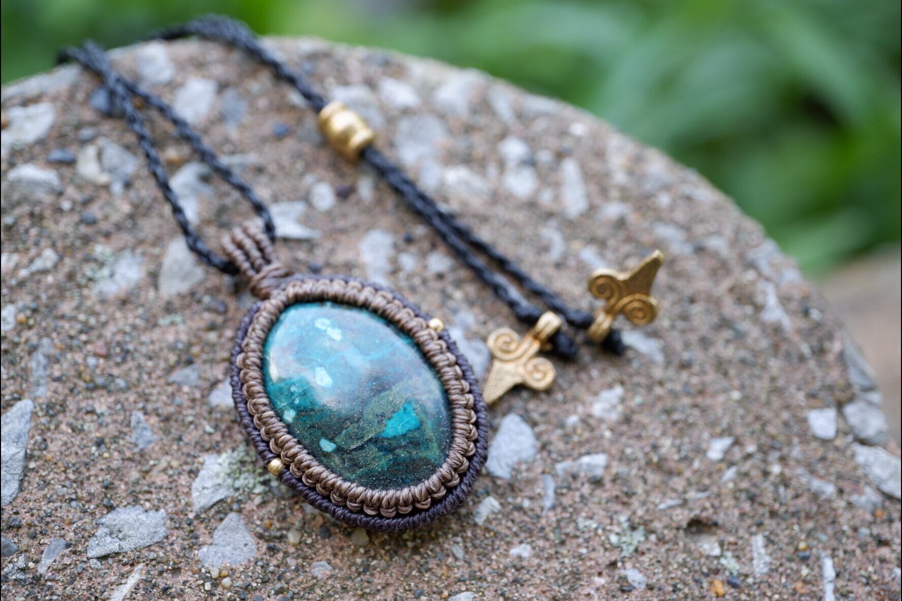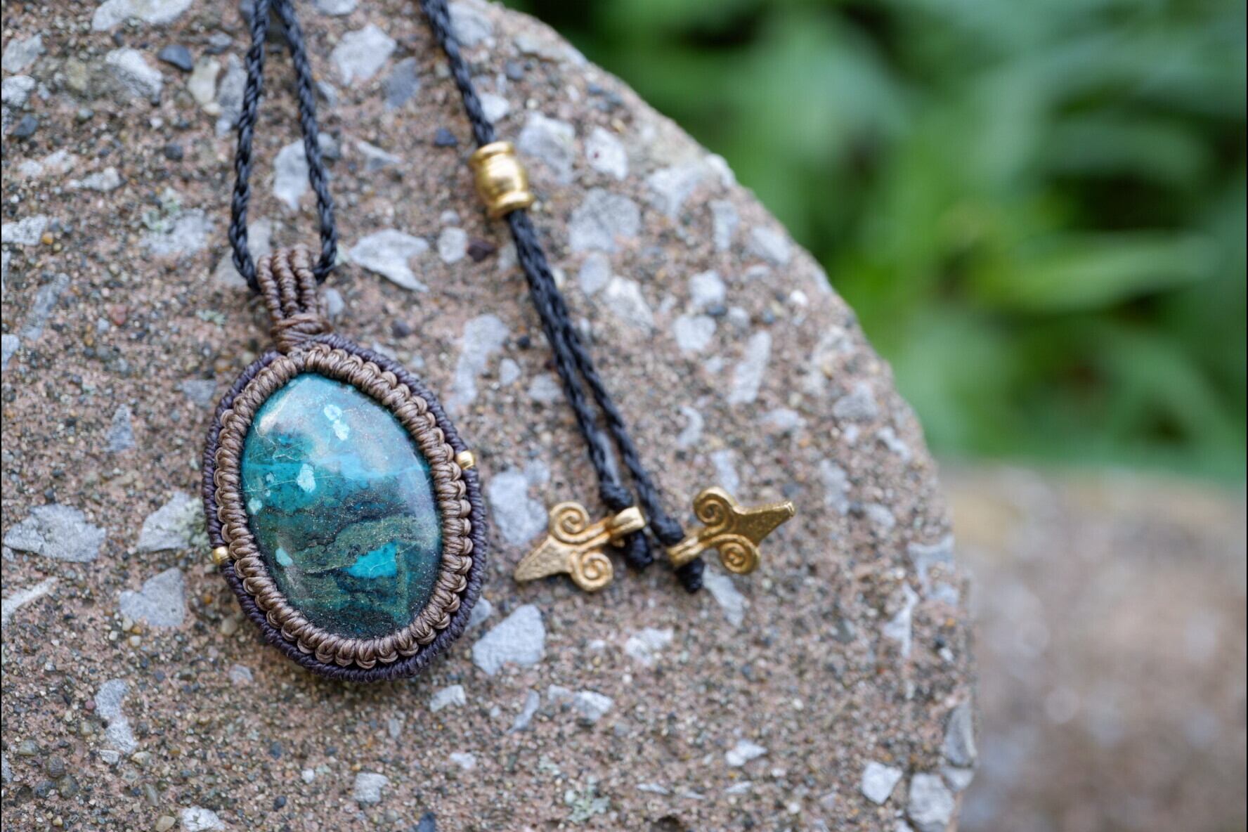 大地の力を秘めた美しいグリーンのクリソコラのネックレス。