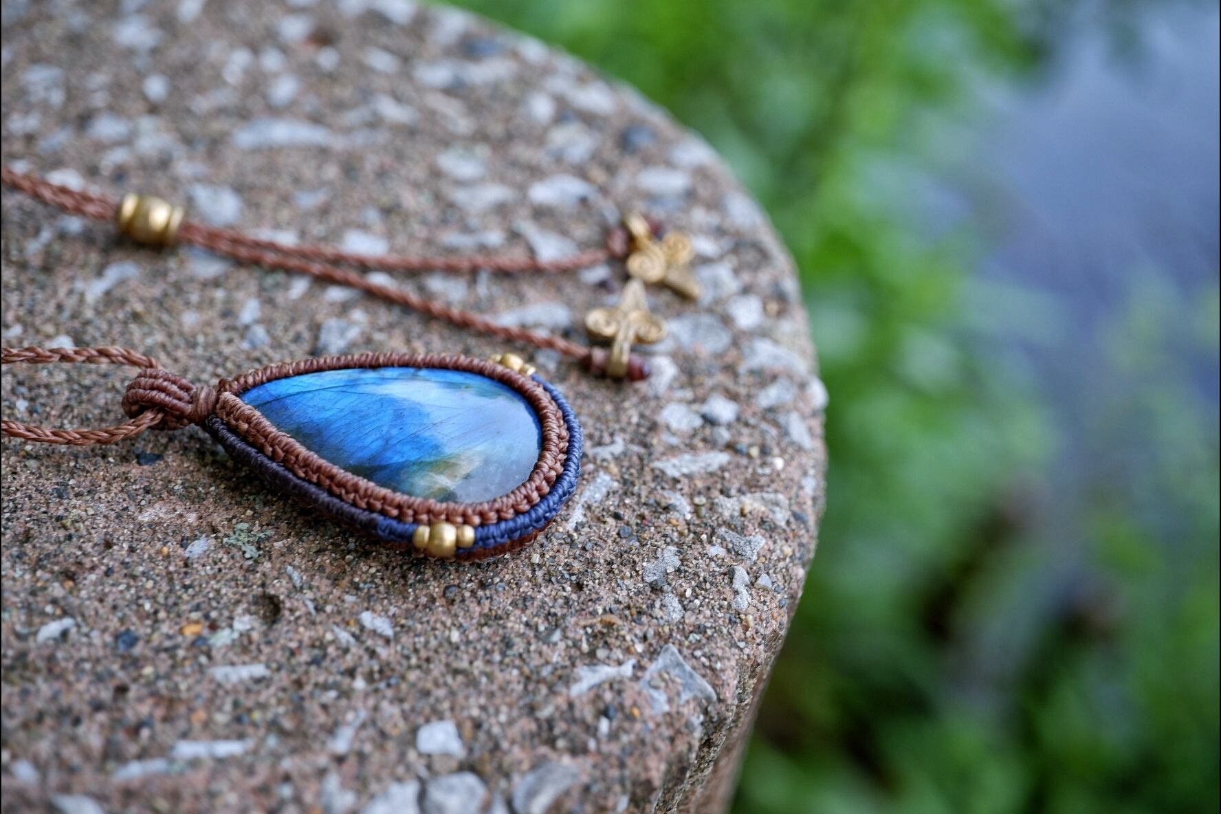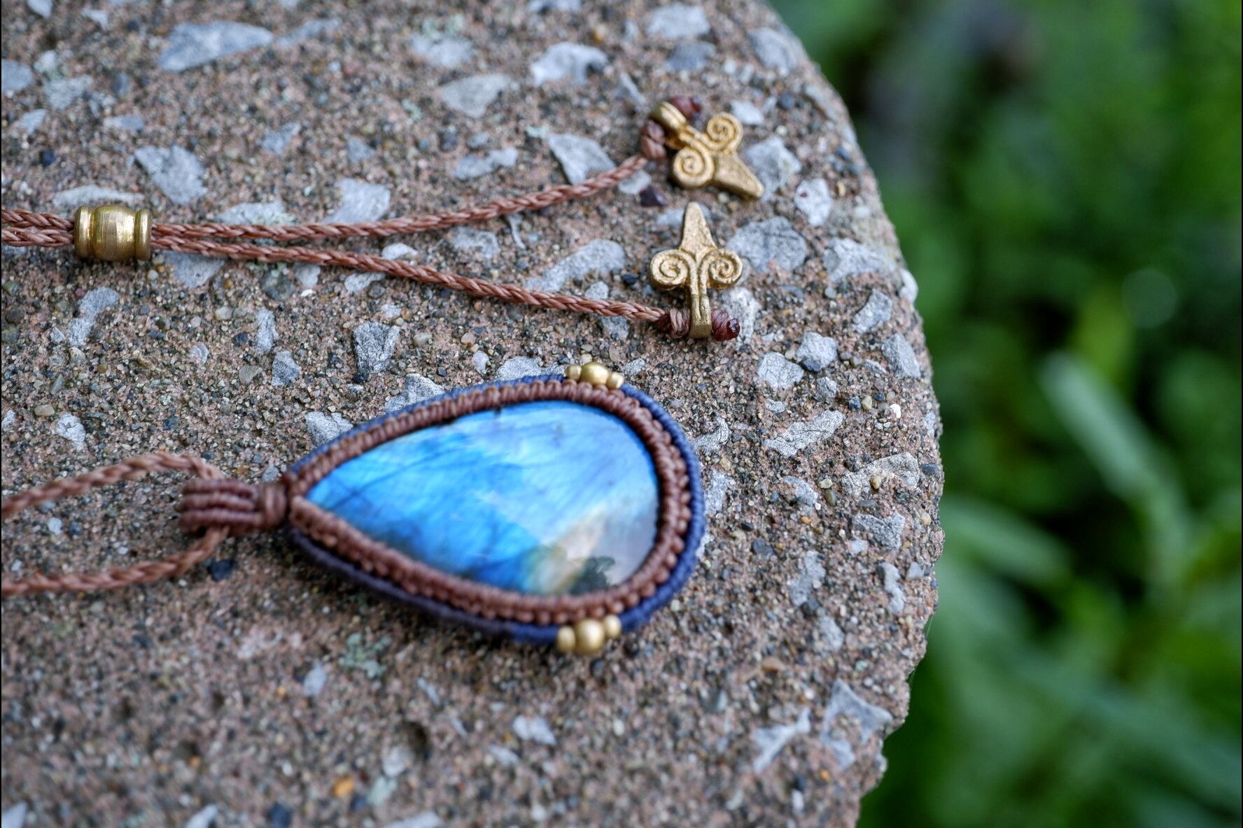 ラブラドライトは月と太陽の象徴とされ、宇宙との繋がりを強めたり、潜在能力の活性化、クリエイティブな活動や、瞑想を深めるお手伝いをしてくれると言われている石です。