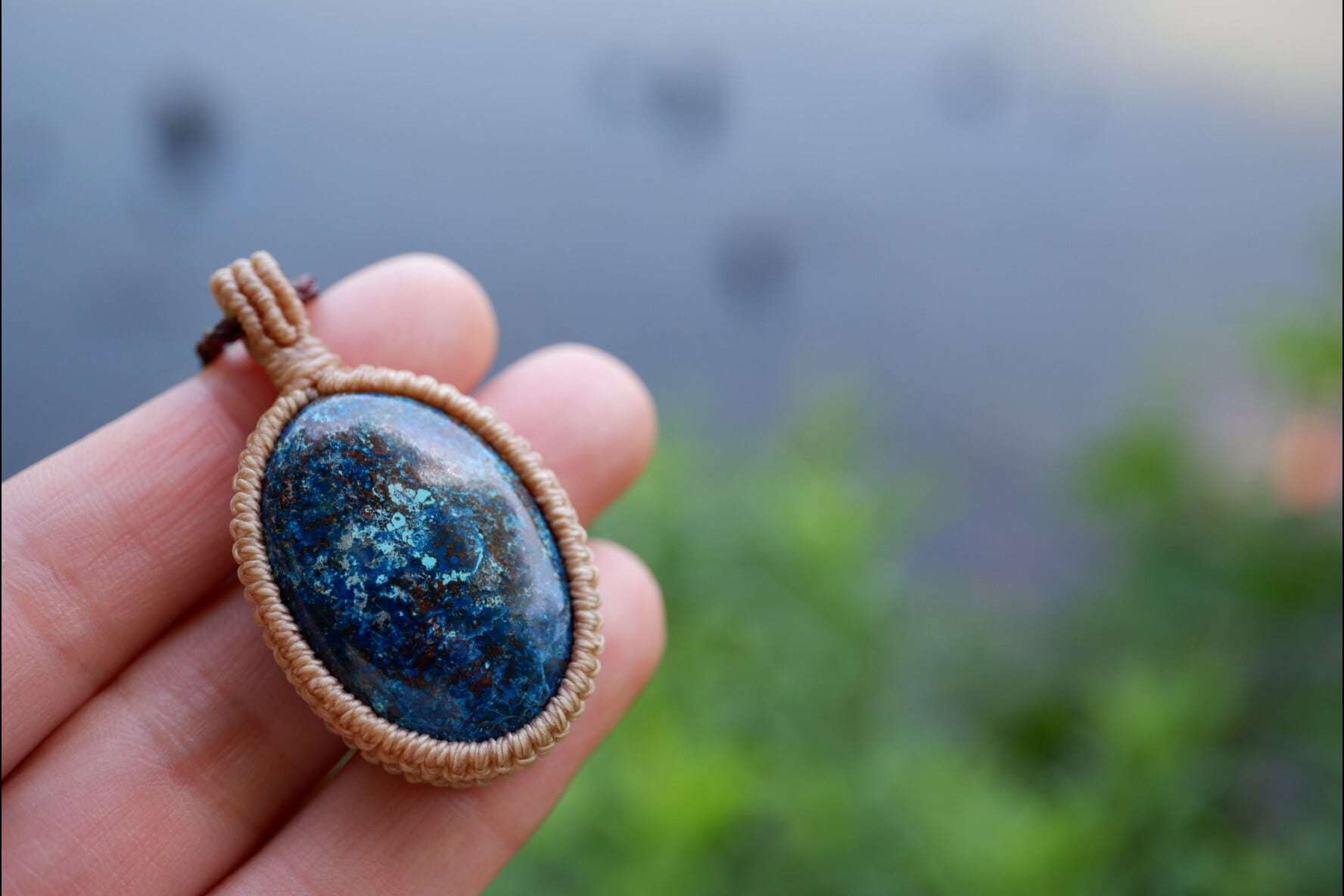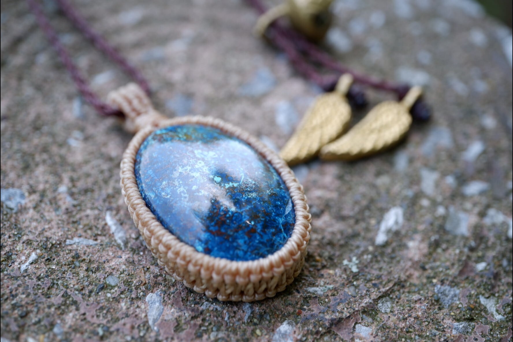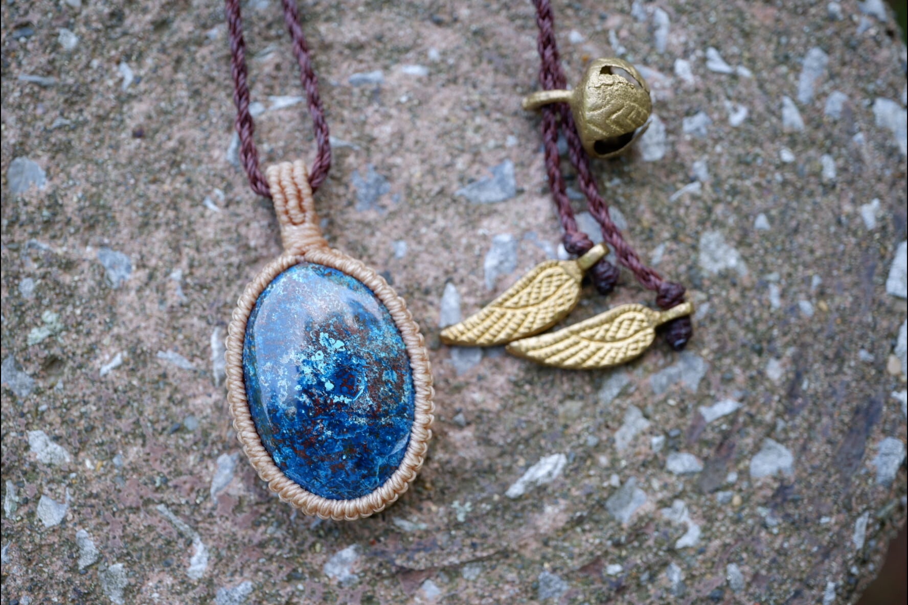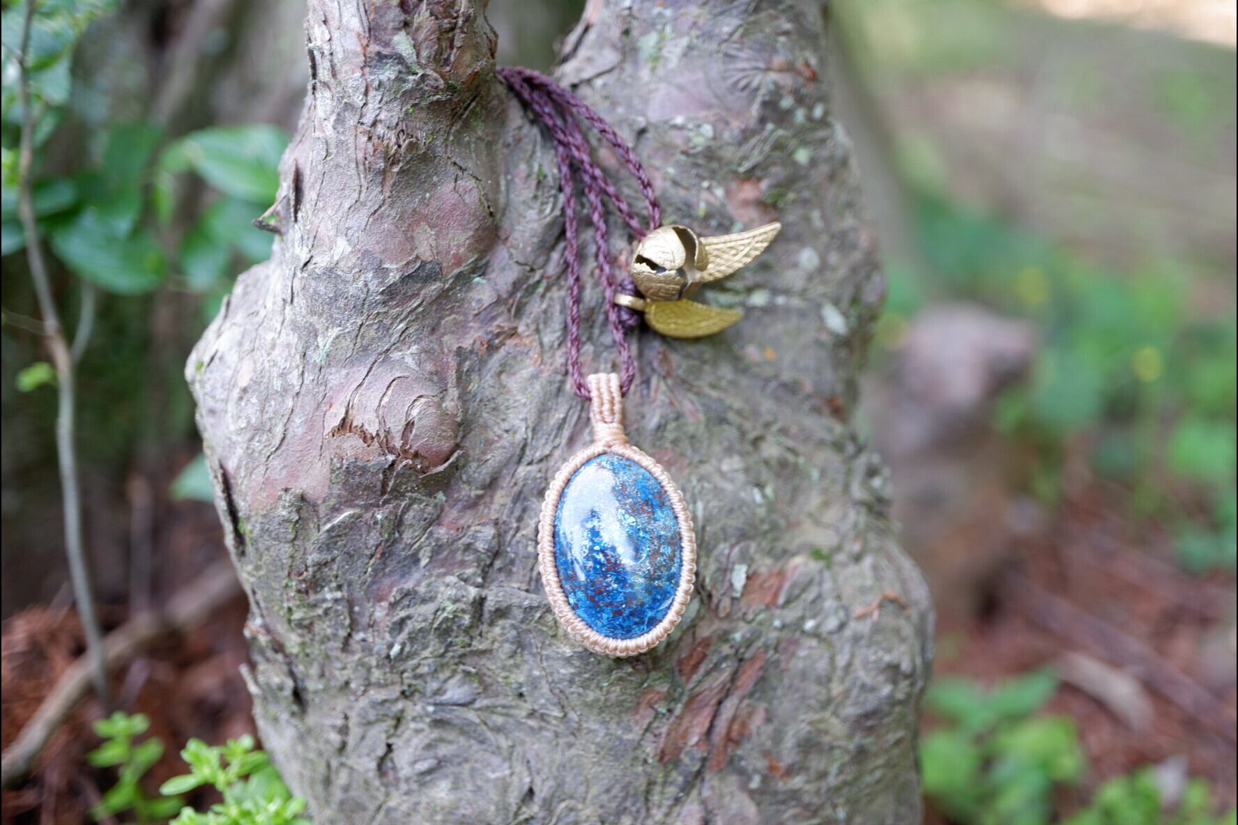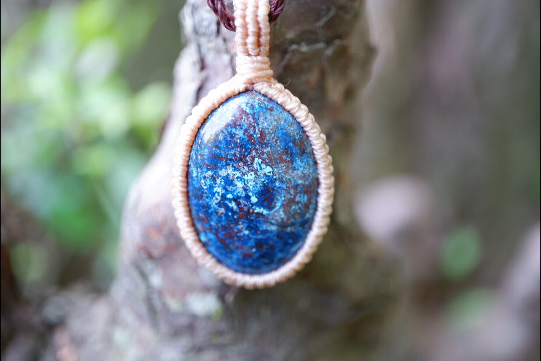 美しい青色が、心地よい自然の力を感じさせてくれるアズライトのネックレス。地球のエネルギー。それは大地も海も風も。