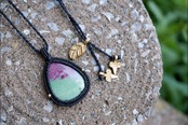 ヒーリング効果の強いグリーンの石ゾイサイトに、情熱の石ルビーが内包されています。