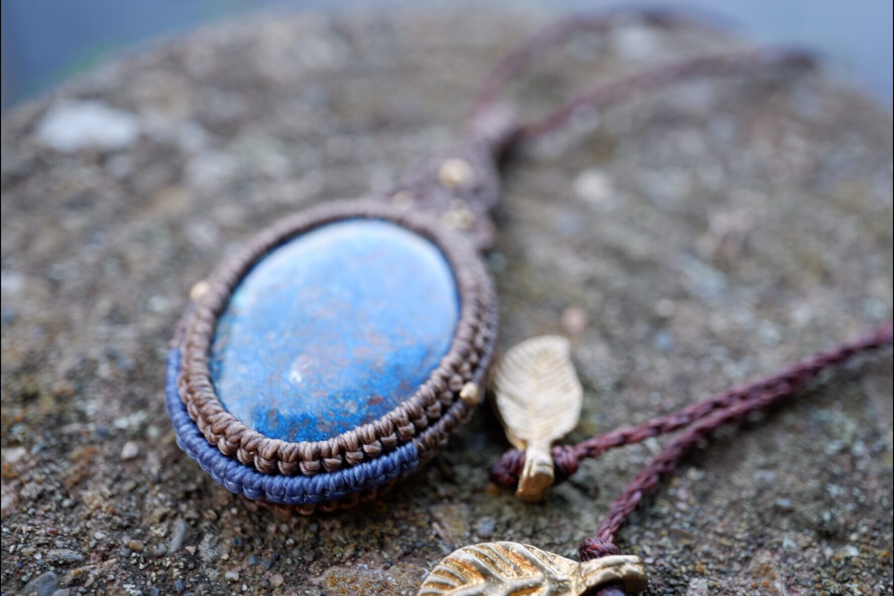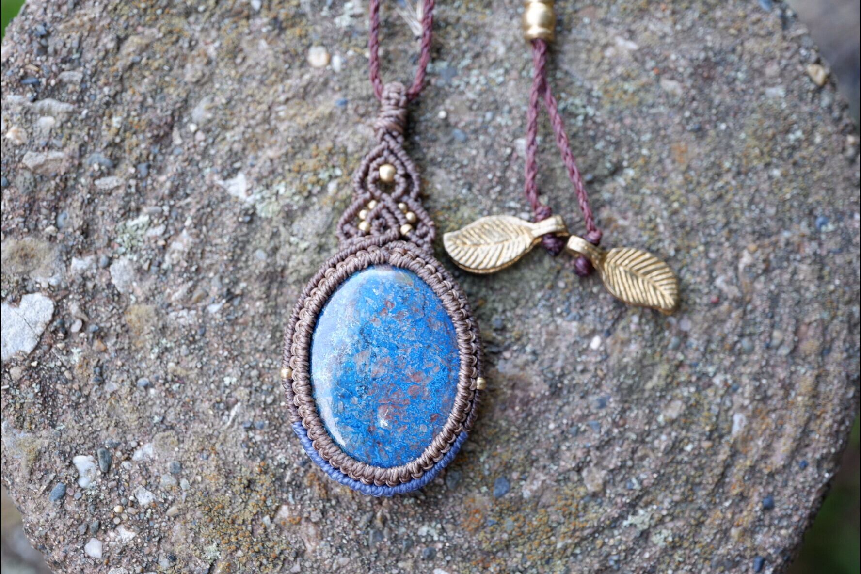 美しい青色が、心地よい自然の力を感じさせてくれるアズライトのネックレス。地球のエネルギー。それは大地も海も風も。