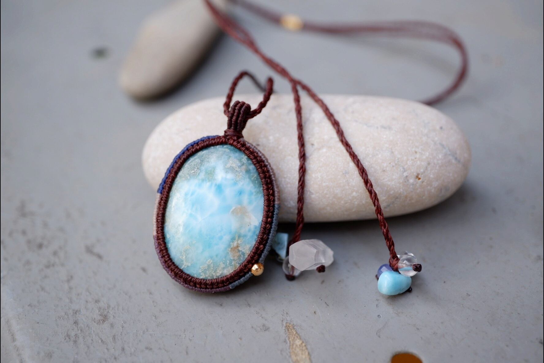ラリマー、水晶、それからタンザナイトのビーズを配置しました。